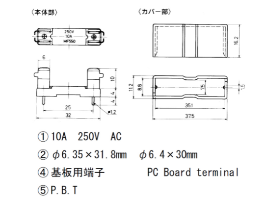 6*30 PCB板安裝保險(xiǎn)絲座 MF-550&550C 10A250V