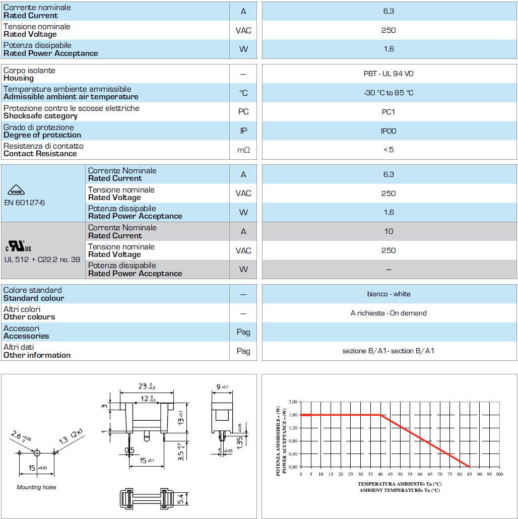 5*20 PCB板安裝保險絲座 PTF-60 S VDE UR CSA 10A250V