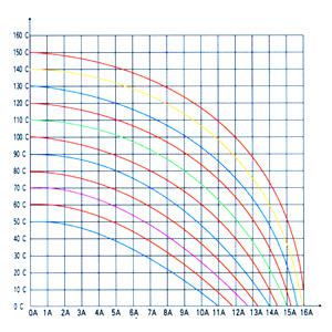 The critical current & ambient temperature curve(Note:the current will effect to the open temperature)